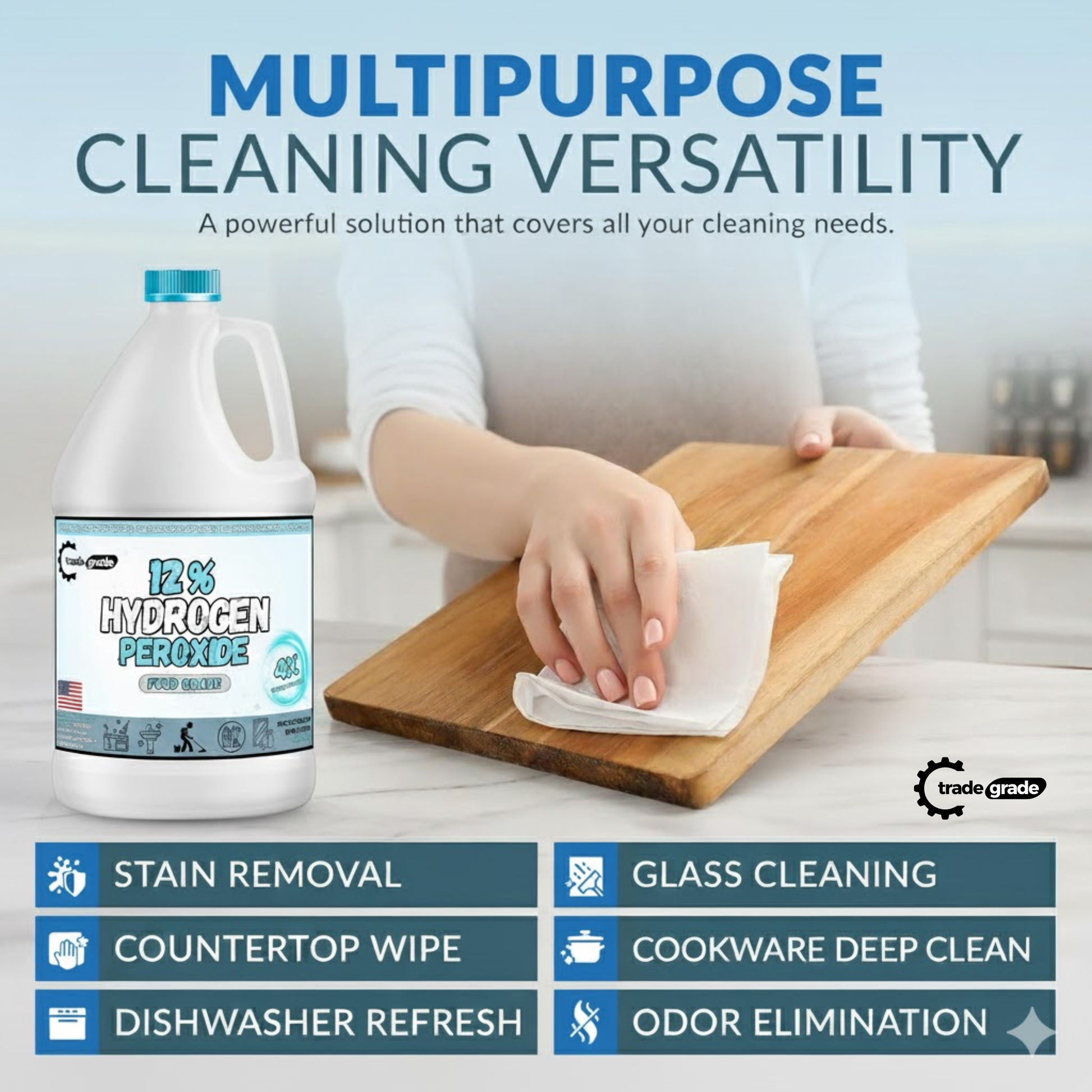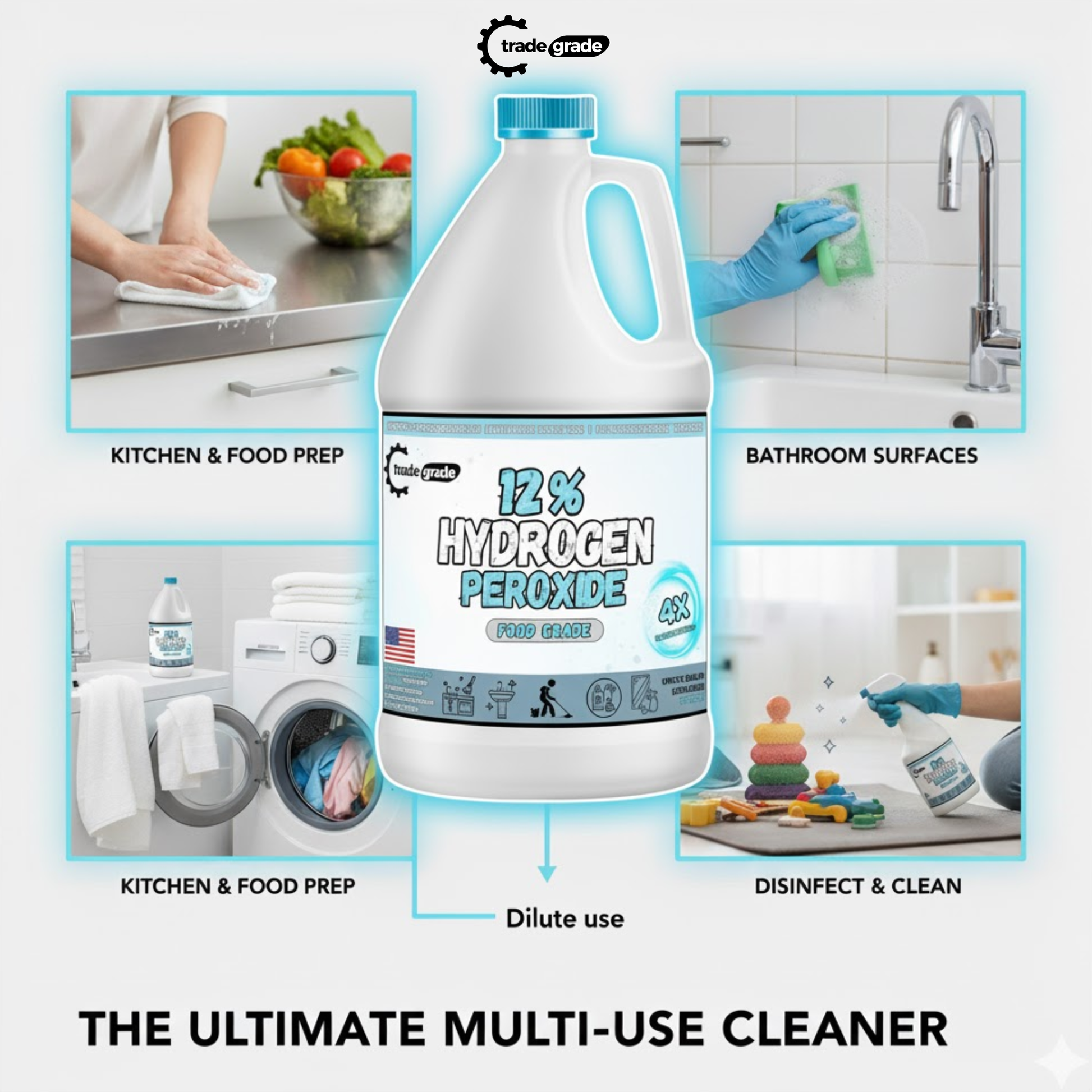 TradeGrade 12% Food Grade Hydrogen Peroxide H202 – Powerful 4X Concentrate | Multipurpose Cleaner for Home, Kitchen, Laundry & More