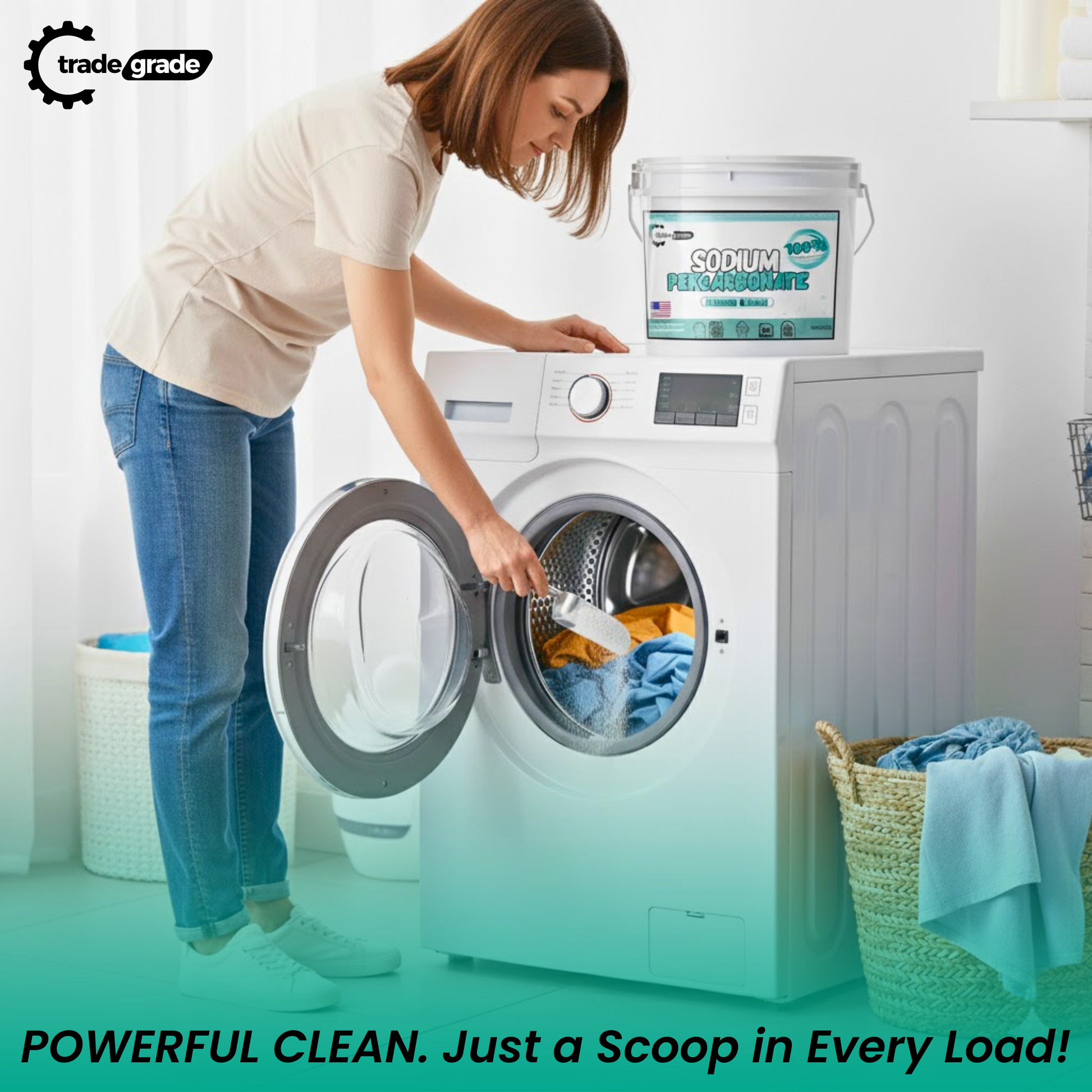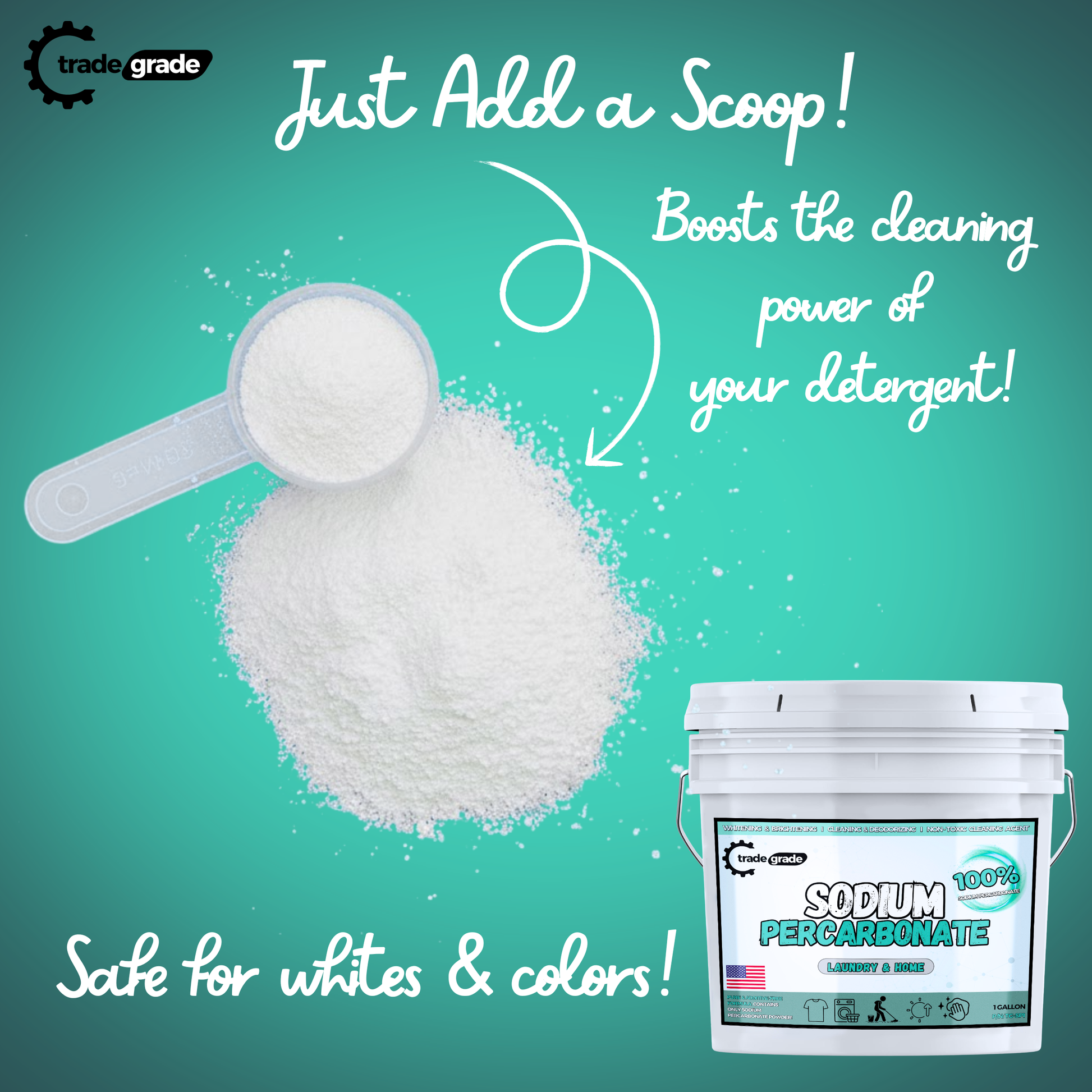 TradeGrade Sodium Percarbonate Powder – Oxygen Bleach Powder for Laundry, Home & Outdoor Cleaning – Unscented Multi-Purpose Cleaner and Stain Remover in Resealable Bucket